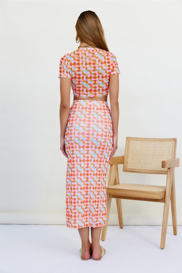 Embrace the colours of the summer sky in the Scattering Maxi Skirt. Make your next vacation one to remember and style with the matching crop and slides.